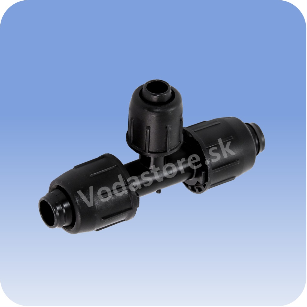 Adaptér T-kus redukovaný 20x16 mm slúži na jednoduché vytvorenie odbočky z priemeru 20mm na 16mm potrubie, alebo pokračovanie s kvapkovou hadicou Poistná matica zabezpečuje spoľahlivé spojenie,