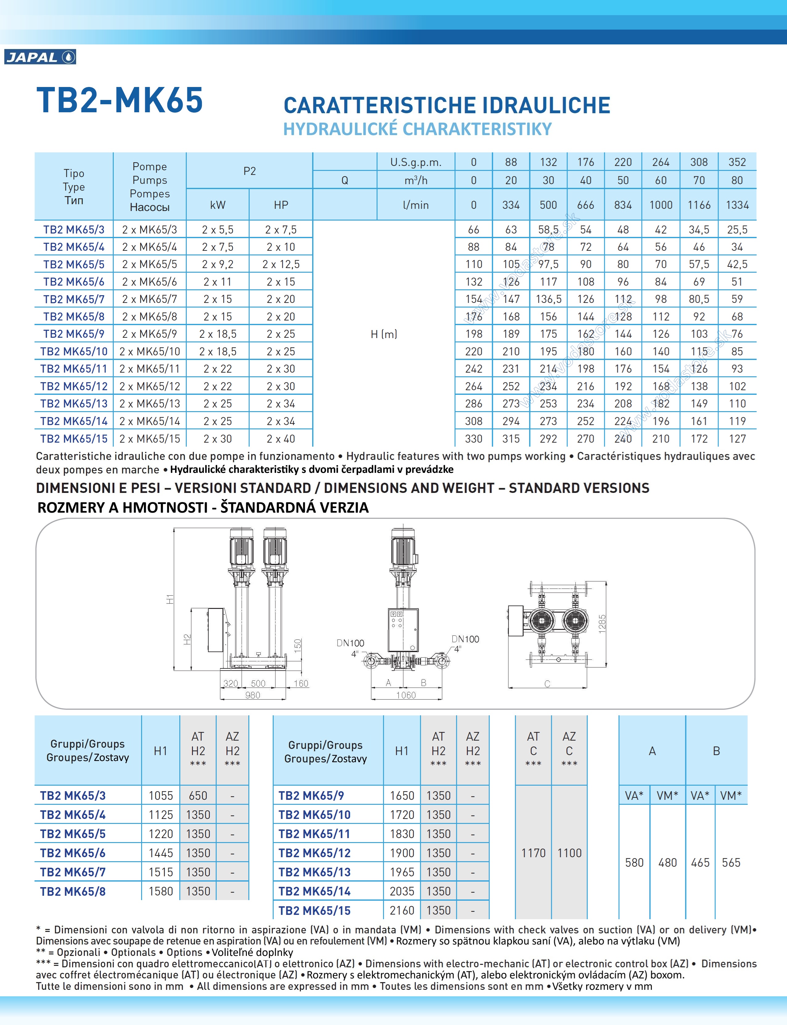 Automatická Tlakovacia stanica TB2-MK65 s dvomi vertikálnymi viacstupňovými čerpadlami MK65 kvalitnej konštrukcie, Vhodné pre zvyšovanie tlaku a dopravu vody a kvapalín v privátnom aj priemyselnom sektore. Pokračovať