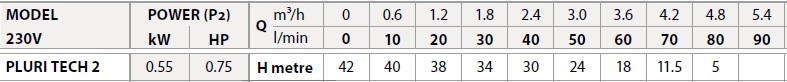 Automatické ponorné čerpadlo PluriTech2 - jednofázové čerpadlo s konštrukciou typu monoblok. Materiál plášťa, sacia mriežka, obežné kolesá z technopolyméru. Určené na čerpanie čistej vody do obsahu piesku 40g/m3. Vhodné pre čerpanie z širších vrtov, kopaných studní a nádrží.