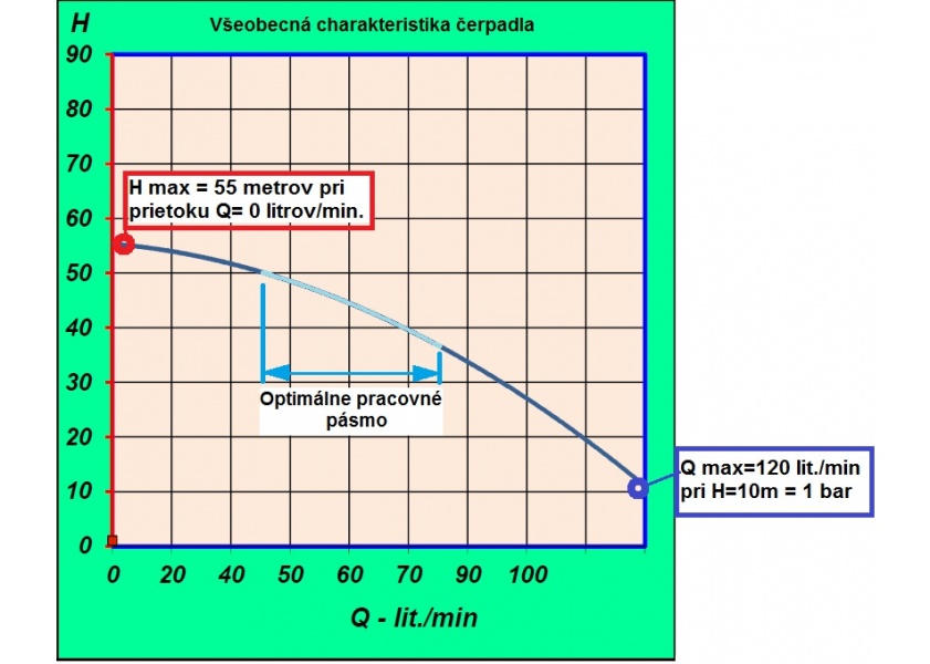 POZOR! Pri nakupovaní čerpadla dochádza často k omylu a predajca si zmýli optimálny pracovný bod s maximálnymi hodnotami. Potom bude čerpadlo poddimenzované a v systéme nebude dostatok vody, ani požadovaný tlak. Závlahový systém bude v takomto prípade nefunkčný.