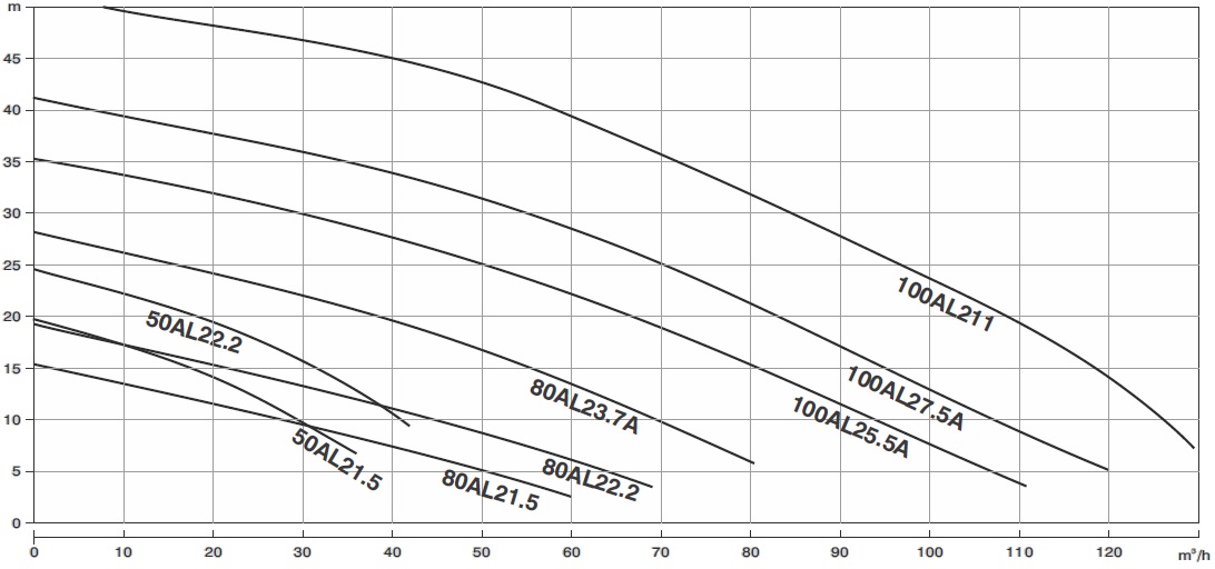 Ponorné čerpadlá HCP 100AL27.5A-WD 400V/7,5kW sú výkonné jednostupňové ponorné čerpadlá s otvoreným obežným kolesom z liatiny, používané pre likvidáciu čistej, alebo špinavej vody alebo iných kvapalín, vhodné predovšetkým na čerpanie záplavovej, dažďovej, alebo znečistenej vody z akumulačných nádrží, na súkromné i verejné účely a všade tam, kde je potrebné efektívne odčerpanie vody s obsahom nečistôt a drobných častíc. Dopravná výška max. 41,5 m, optimálny pracovný bod H=32 metrov, Q= 48m3/hod. Čerpadlá AL nie sú určené na čerpanie horľavých, či výbušných látok. Čerpadlo musí byť chladené okolitým médiom a preto by hladina mala byť vždy min. 5cm nad hornou časťou motora.
