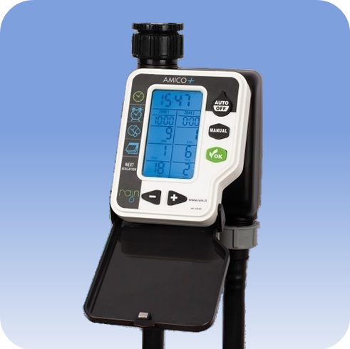 Jednotka AMICO +2 je dvojitý batériový ventil na vodu, ktorý sa otvára a zatvára podľa jednoduchého časového programu. Amico sa vyznačuje veľmi jednoduchou obsluhou a jeho nastavenie zvládne aj menej skúsený užívateľ. Umožní spúšťať polievanie vašej záhradky cez pripojené hadicové rozvody aj počas vašej neprítomnosti, napríklad keď ste v práci. Stačí si iba nastaviť požadovaný program. AMICO má pomerne malú spotrebu energie a preto v ňom batérie vydržia dlho. Samozrejme odporúča sa používať kvalitné batérie (long life) s dlhou životnosťou. Pripojovací závit má dva rozmery 3/4" a 1" a je preto vhodný pre väčšinu ventilov a kohútikov.
