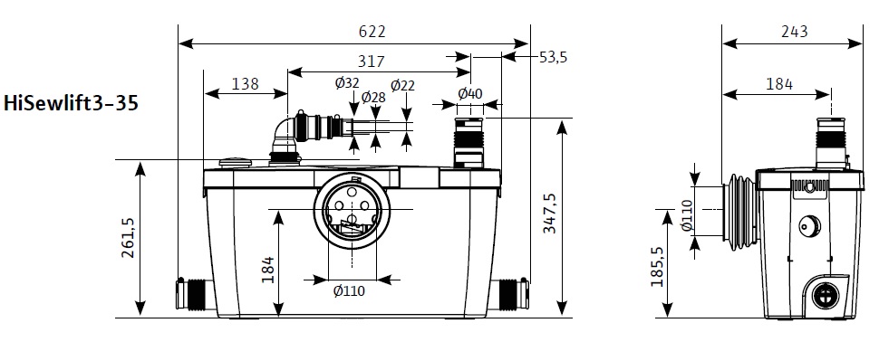 HiSewlift3 3-35-prečerpávač splaškov-230V