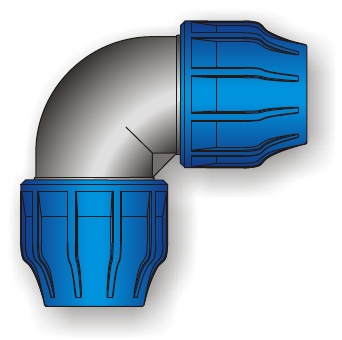 Koleno 25x25 do max. tlaku 0,16 MPa, určená na spájanie vodoinštalačných komponentov a PolyEtylénových rúr typizovaných rozmerov.