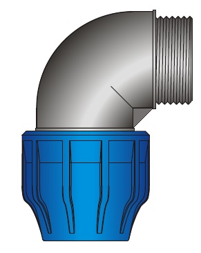 Koleno s vonkajším závitom 40/1" do max. tlaku 0,16 MPa, určená na spájanie vodoinštalačných komponentov a Polyetylénových rúr typizovaných rozmerov.