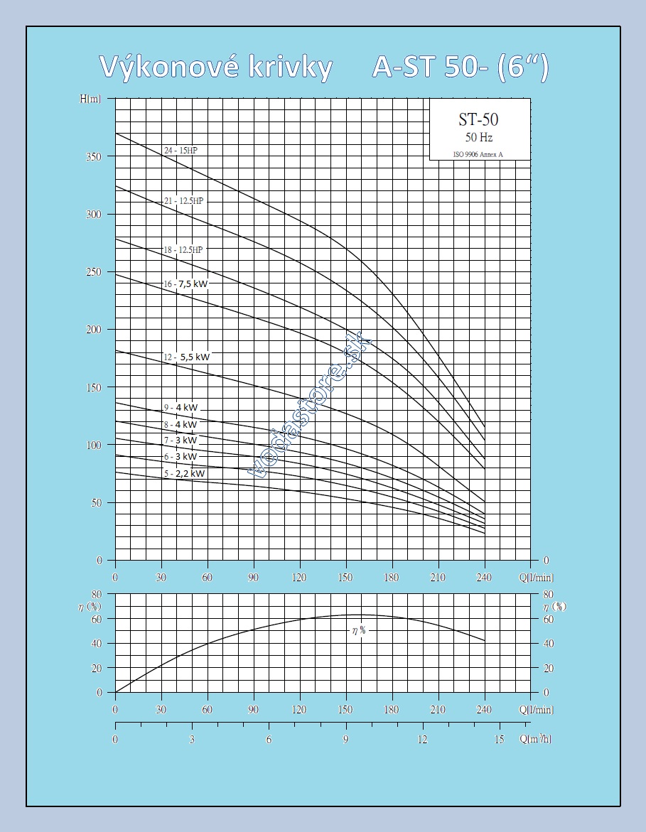 AST 50-08-3 inch /400V/4kW je profesionálne ponorné viacstupňové 6" čerpadlo so semiaxiálnou konštrukciou jednotlivých stupňov, verzia s trojfázovým 4" motorom a špeciálnym materiálovým prevedením pre zvýšenú odolnosť. Vhodné do vrtov od priemeru 150mm. Pokračovať