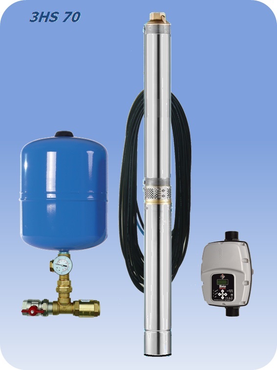 Energeticky úsporné čerpadlo 3HS 70 je ponorné viacstupňové 3" čerpadlo s modernou technológiou pohonu zvýšenými otáčkami s reguláciou výkonu, ktorá udržuje konštantný tlak, šetrí energiu a poskytuje široké regulačné pásmo. Ročná úspora energie medzi 30 až 40%. Vhodné predovšetkým do úzkych vrtov od priemeru 100mm. Pokračovať