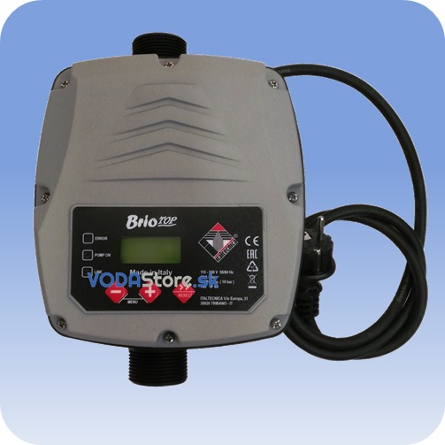 Zariadenie BRIO TOP 2.0 - DVA PRÍSTROJE V JEDNOM - tlakový i prietokový spínač na spínanie jednofázových čerpadiel do výkonu 2,2kW. Pripájací závit 5/4" na veľký prietok 100 lit./min. Čerpadlo môže byť riadené v dvoch režimoch (tlak+tlak), alebo (tlak+prietok). Spína, kontroluje tlak, chráni proti suchobehu, nadprúdu, prepätiu, zamrznutiu čerpadla, umožňuje nastaviť pravidelné pretočenie čerpadla. Okrem riadenia prevádzky teda v sebe obsahuje kompletnú ochrannú jednotku čerpadla. Novinka- rozbehový kondenzátor motora je možné umiestniť vo vnútri prístroja. Pokračovať