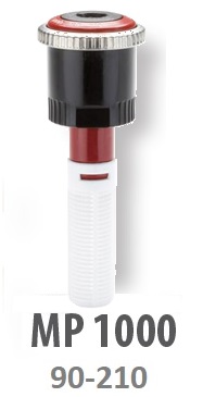 Rotačná tryska MP 1000 s rotujúcimi vodnými lúčmi nastaviteľná výseč 90°- 210º, dostrek 3,7m - 4,5 m, prietok 0,04 - 0,11 m3/h, optimálny prevádzkový tlak 2,8 bar – rádius dostreku je možné redukovať do 25%. Určené pred modely telies statických postrekovačov s vonkajším závitom pre trysku.