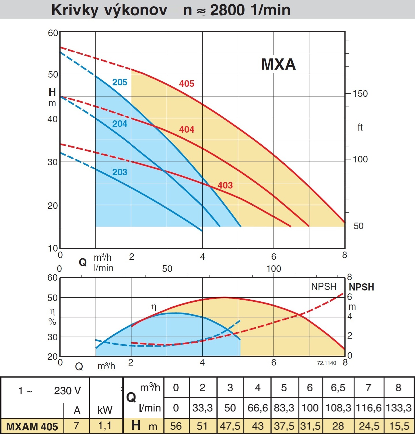 Výkonné samonasávacie viacstupňové odstredivé čerpadlo kvalitnej konštrukcie od známeho Talianskeho výrobcu CALPEDA, vhodné pre zásobovanie vodou z narážaných studní a vrtov. Maximálna sacia hĺbka 7 metrov, optimálny pracovné pásmo 3 - 6 m3/hod. Príkon 1100W Maximálna dopravná výška 57m, max. prietok 8 m3. Podrobné technické parametre nájdete v parametroch. Čerpadlá série MXA sú horizontálne samonasávacie odstredivé čerpadlá k doprave vody, alebo iných riedkych neagresívnych a neexplodujúcich tekutín bez abrazívnych a dlhovláknitých prímesí používajú sa predovšetkým pre zásobovanie vodou, alebo na zvyšovanie tlaku. Podrobné hodnoty výkonov nájdete v prílohe.