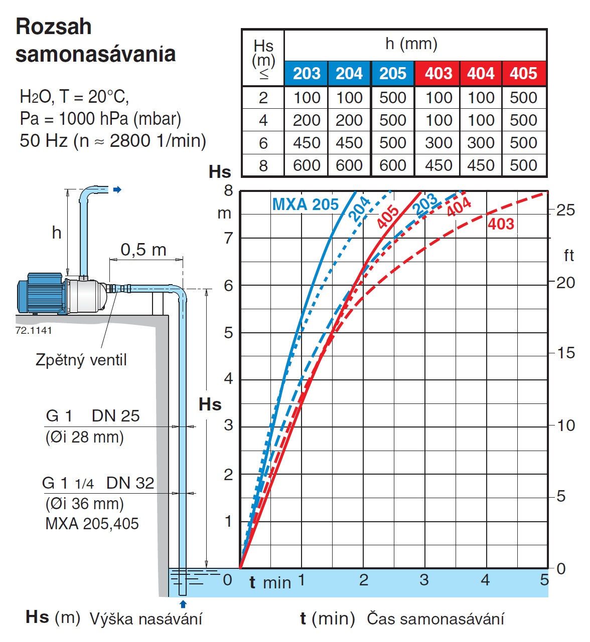 | Maximálna dop. výška H (tlak) | 5,7 bar = 57m |