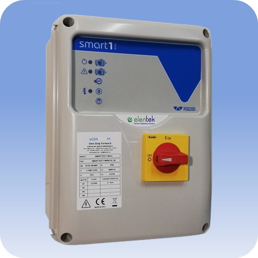 Univerzálna ovládacia jednotka pre jednofázové čerpadlo vo výkonovom rozsahu od 0,37 kW do 2,2 kW. Spoľahlivá automaticky nastaviteľná prúdová ochrana, vstup na tlakový spínač, plavákový spínač, prípadne hladinové elektródové senzory. Zabezpečuje ochranu čerpadla pred preťažením, pred chodom na sucho, spoľahlivo spína a použitím nízkeho napätia v ovládacích obvodoch šetrí kontakty tlakových, alebo plavákových spínačov, čím zvyšuje spoľahlivosť a predlžuje životnosť systému.