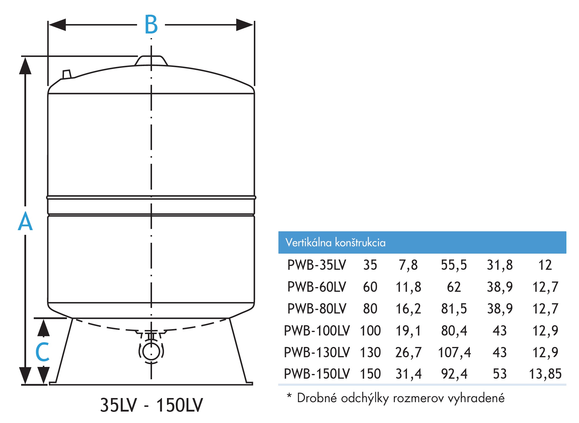 Tlaková nádoba GWS - PWB-150LV vertikálna s predĺženou životnosťou v profi kvalite, s atestom na pitnú vodu, určená na použitie vo vodárenských systémoch pre studenú vodu. Vďaka vnútornej membráne, ktorá je na vzduchovom vankúši vyrovnáva objemové a tlakové výkyvy v systéme. Pokračovať