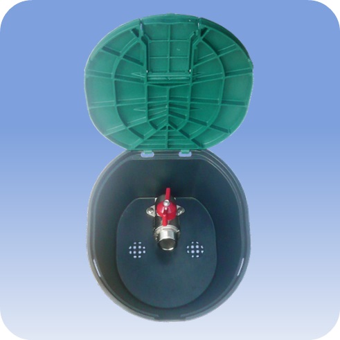 Ventilový box s guľovým ventilom slúži ako miesto pre pripojenie hadice vo vašej záhrade. Nevyčnieva z terénu, poklop má zelenú farbu a tak splýva so zeleňou v záhrade. Výhodou je výrez v poklope pre jednoduchšiu manipuláciu s hadicou.
