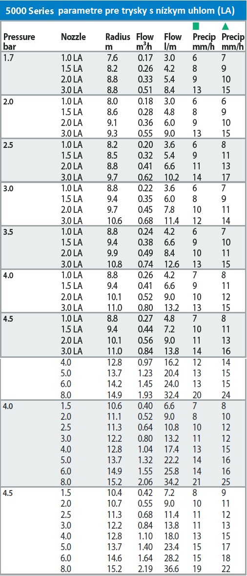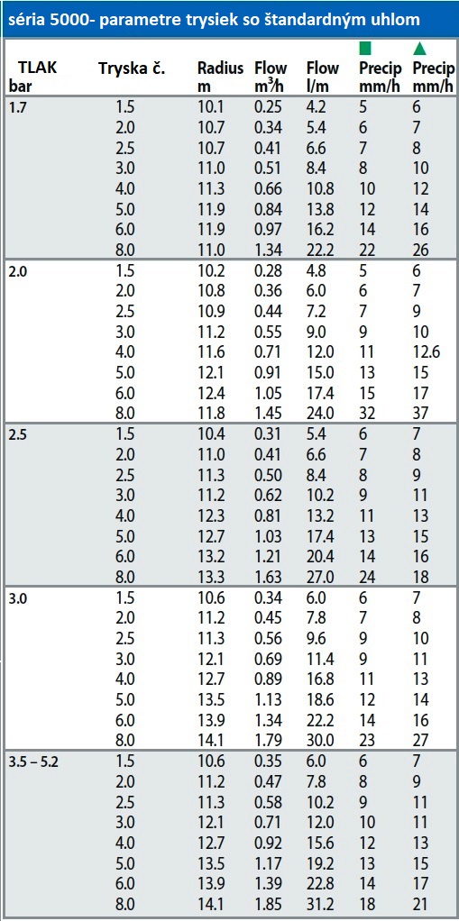 Parametre dostrekov a prietokov doplnkových trysiek nájdete v prílohách.