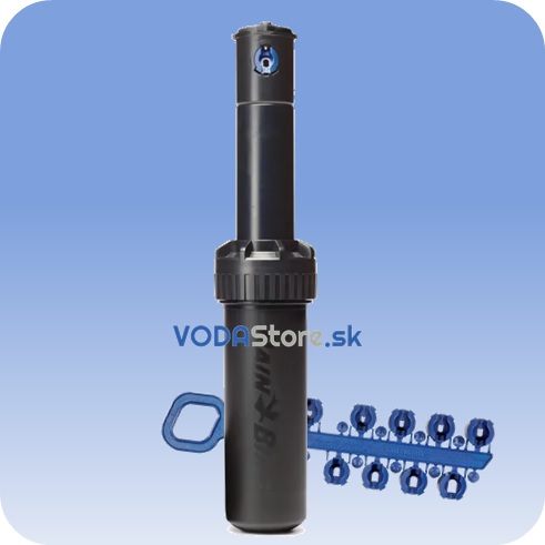 Výsuvný postrekovač 5004-PC s rotačnou hlavou, dostrek 10,2 až 15,2 metra (podľa tlaku a nasadenej trysky). Model PC -(reversing part circle-reverzný chod po výseči kružnice). Pokračovať
