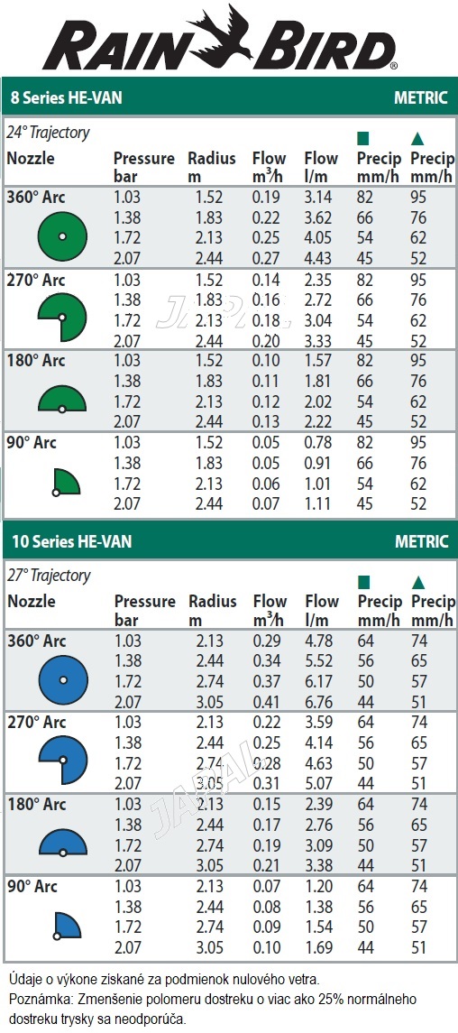 Tryska Rain Bird typu HE-VAN 8 je statická s dostrekom do 2,4 m určená pre montáž do telies statických výsuvných postrekovačov. Pokračovať
